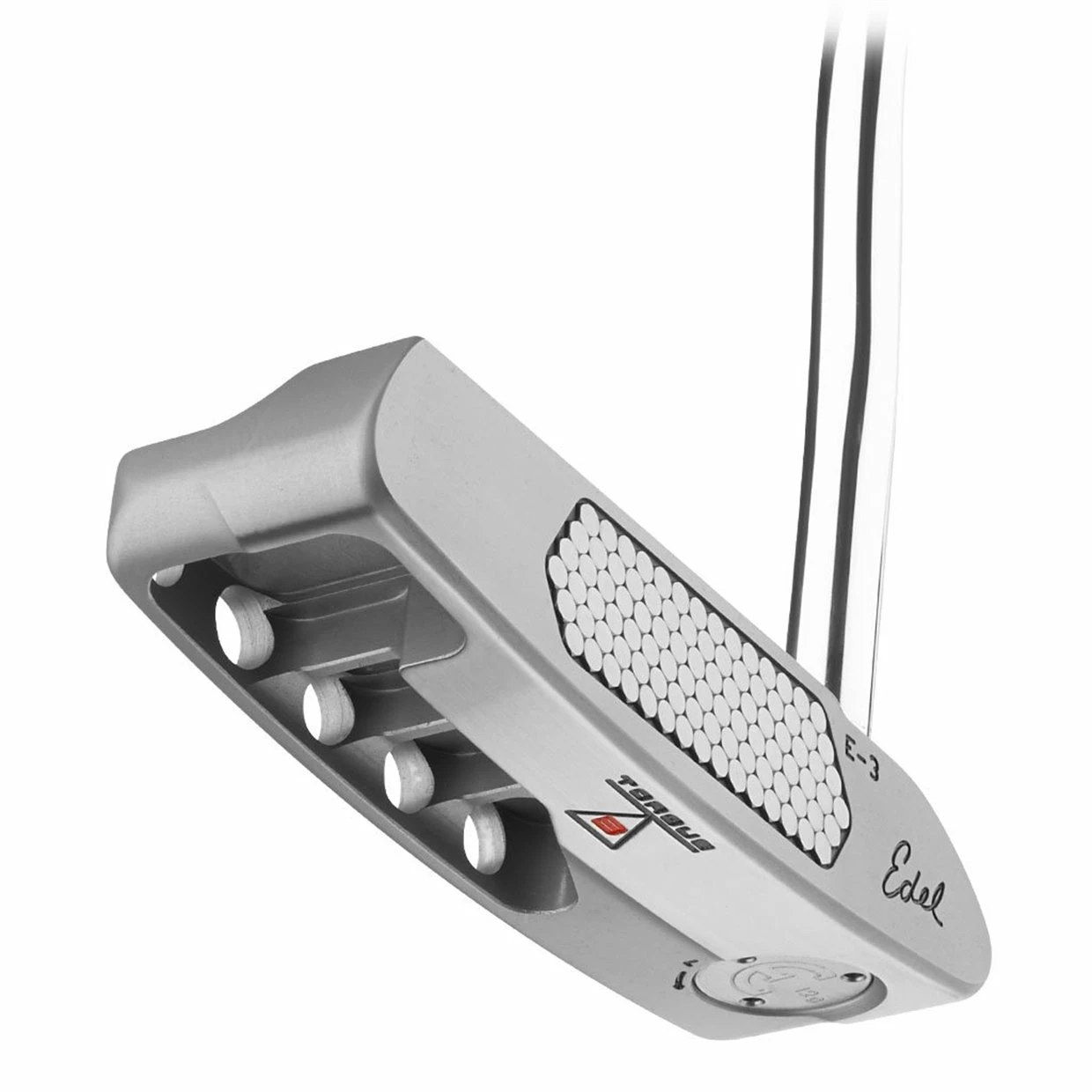 The Edel E-3 Torque Balanced Platinum Putter features Torque Balanced technology which dramatically reduces twisting at impact. It promotes a smooth and consistent motion and has a greater opportunity of returning to square at impact. Torque Balanced technology repositions weight from the toe of the putter and positions it in the heel, this creates a toe-up balanced head. PIXL insert composed of 93 individual pixls enhances roll and feel. Modified blade clubhead with a sight line on the top line and parallel back and leading edges.