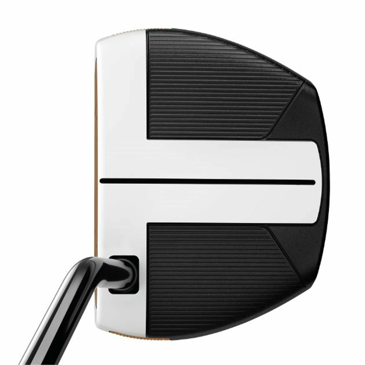 The Spider FCG putter looks like a mallet, feels like a blade, and forgives like a Spider. The forward CG placement delivers blade performance with the MOI of a mallet. CU Pure Roll Copper insert gives you a firm feel and incredible sound, while increasing topspin and improving forward roll. Heavy tungsten sole weights in the heel and toe optimize forward loading for strong contact.